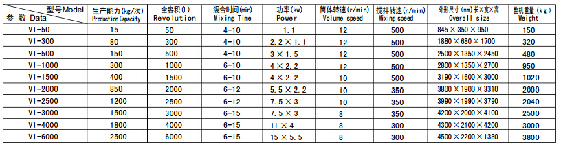 該機對較細的粉粒,凝塊后或二種以上的粉狀體,含有一定水份的物料均能混合。如對微量物相加的添加物也可達到混合效果(指添加量很少的配料混合)。